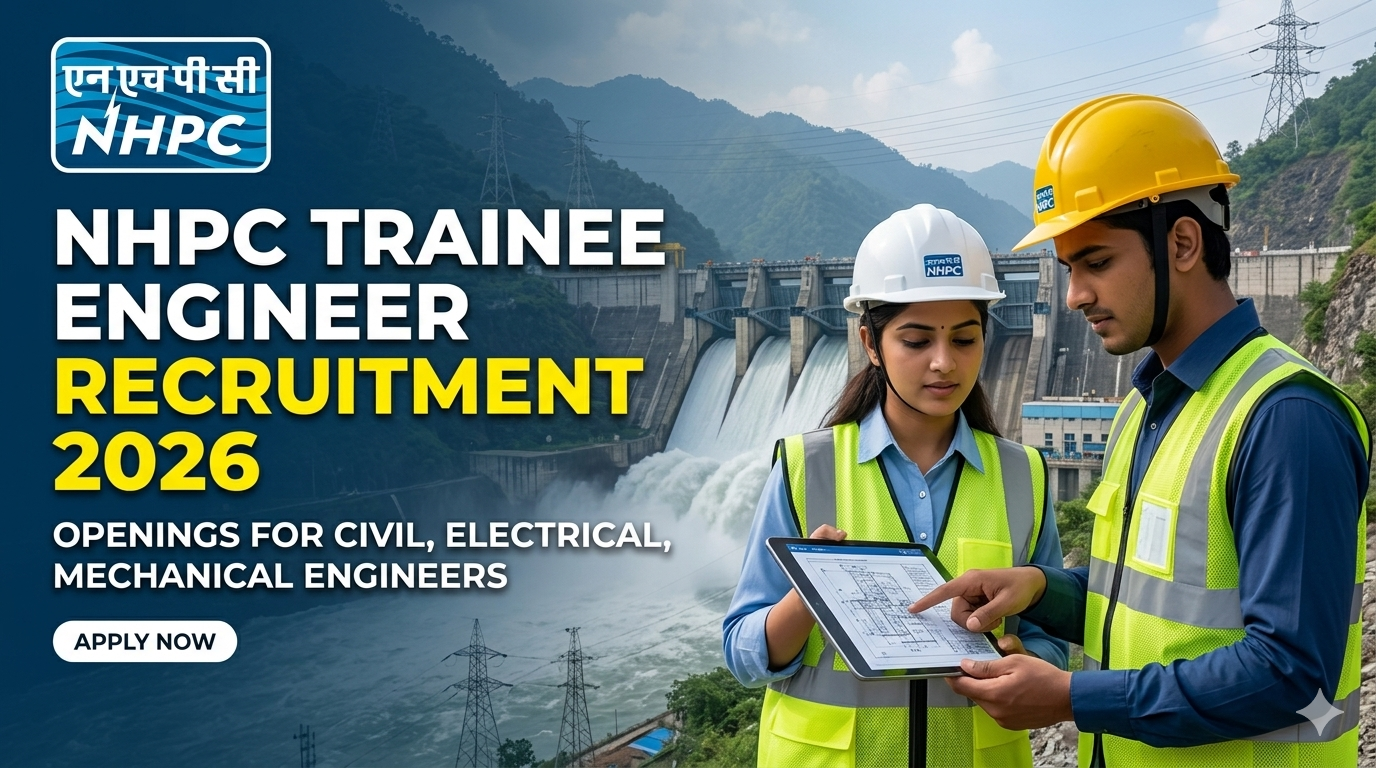 दरवर्षीप्रमाणे NHPC विविध तांत्रिक पदांसाठी भरती करते. 2026 मध्ये Trainee Engineer पदांसाठी भरती प्रक्रिया सुरू करण्यात आली असून इच्छुक उमेदवारांना अधिकृत वेबसाइटवरून अर्ज करण्याची संधी देण्यात आली आहे.