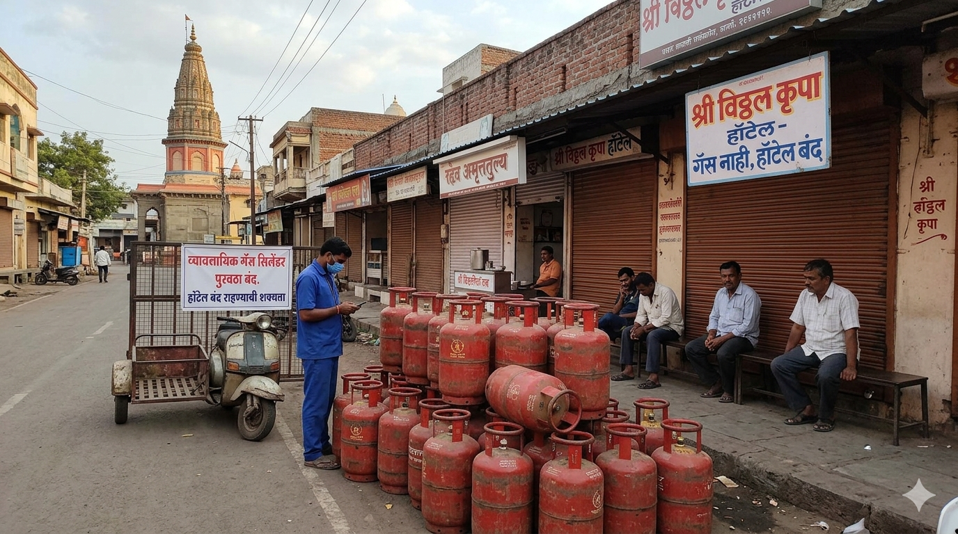 पंढरपूर शहरात व्यावसायिक गॅस सिलेंडरचा पुरवठा अचानक थांबल्यामुळे हॉटेल व्यवसाय मोठ्या अडचणीत सापडला आहे. गॅस उपलब्ध नसल्यामुळे शहरातील अनेक हॉटेल, स्वीट मार्ट, बेकरी आणि ढाबे यांचे कामकाज ठप्प होण्याची शक्यता निर्माण झाली आहे. पुढील दोन दिवसांत पंढरपूरमधील जवळपास 250 हॉटेल्स बंद होण्याची शक्यता व्यक्त करण्यात येत आहे.या परिस्थितीमुळे हॉटेल उद्योगाशी संबंधित हजारो कामगारांच्या उपजीविकेवर मोठा परिणाम होऊ शकतो.